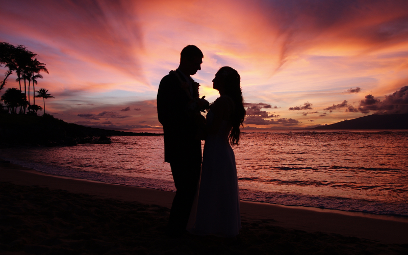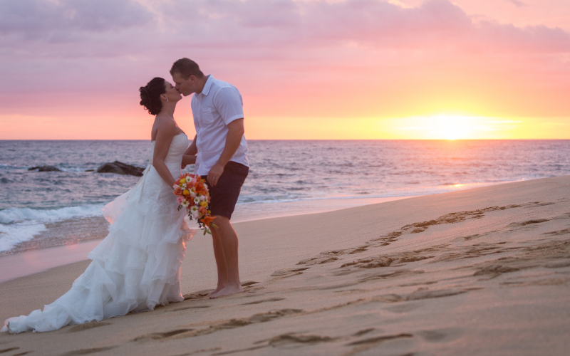 A sunset beach wedding is a dream come true for couples who want to tie the knot in stunning style.