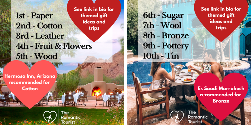 Here, we countdown the traditional year-by-year wedding gift list from 1 to 50 years... and provide some travel inspired gift ideas.